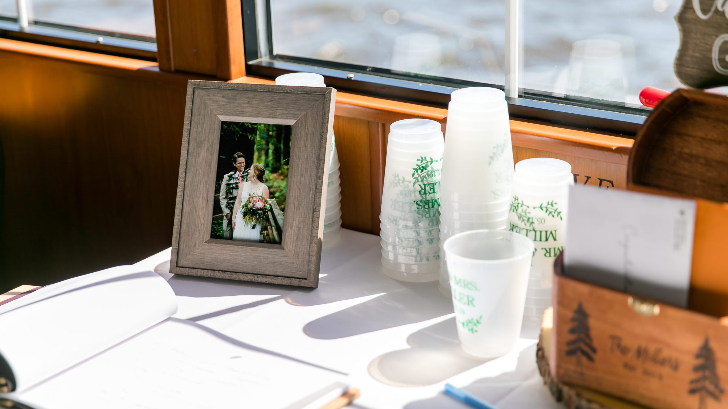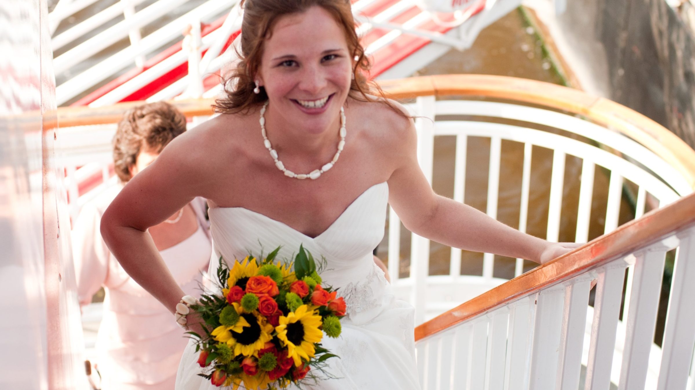 While underway, a maximum of 88 guests are allowed on the upper deck at a time. However, if your ceremony takes place while the boat is tied to the dock, the upper deck can accommodate up to 110 guests. The boat’s overall capacity is 149 passengers.